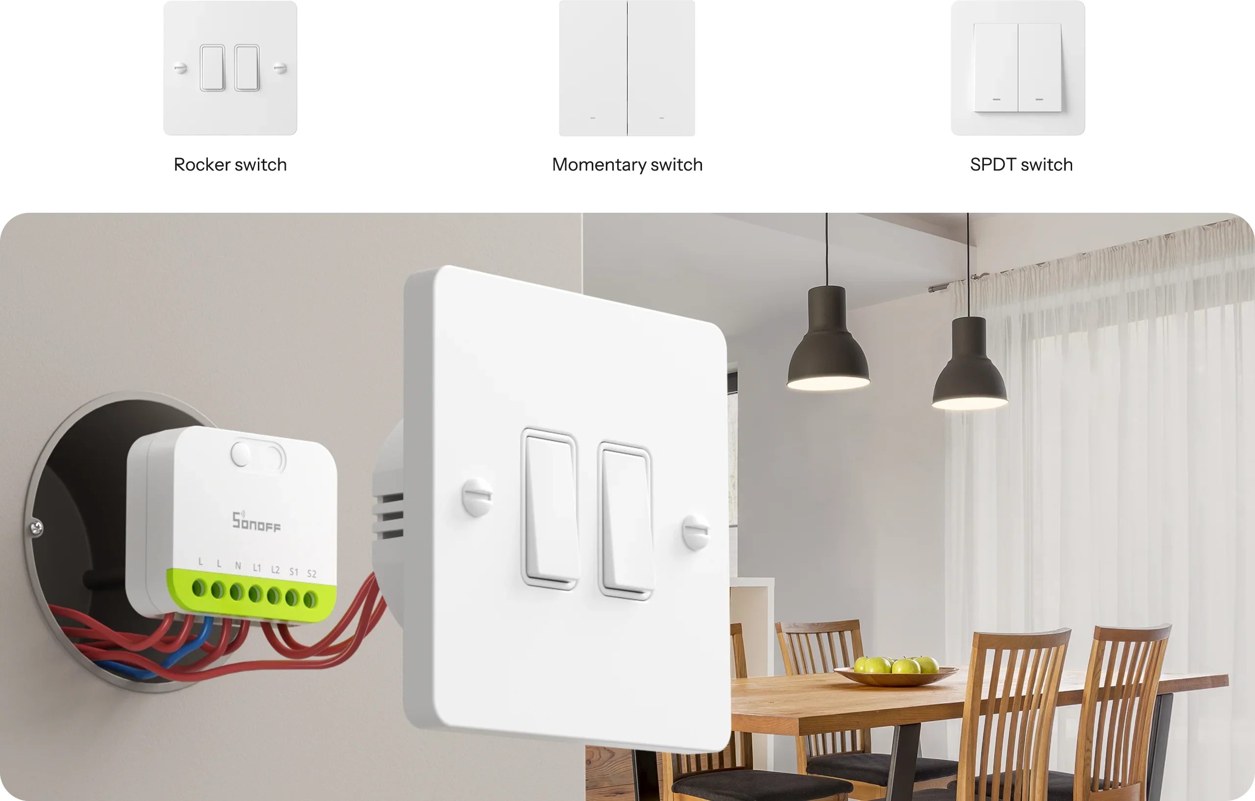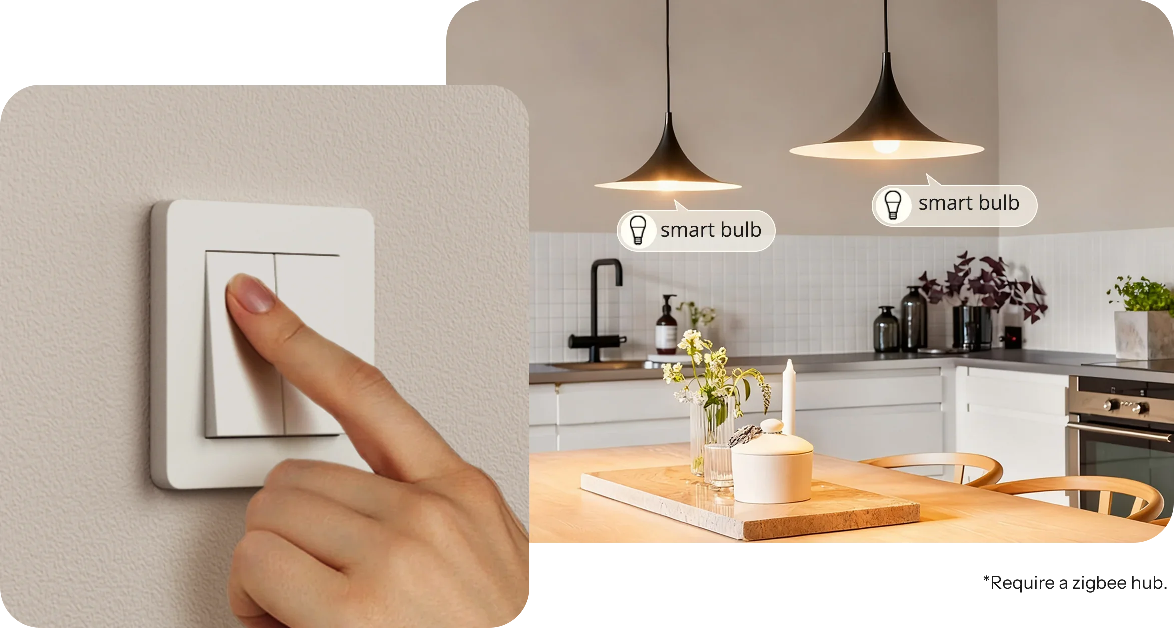 Управляйте двумя осветительными приборами по отдельности и подключайте обычные выключатели, что позволит вам наслаждаться удобством автоматизации без потери классического режима работы выключателей. Поддерживает все типы выключателей.